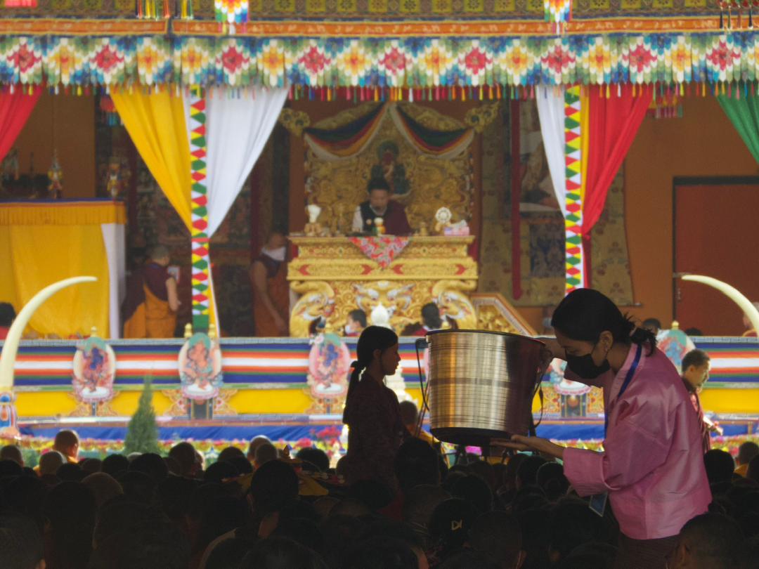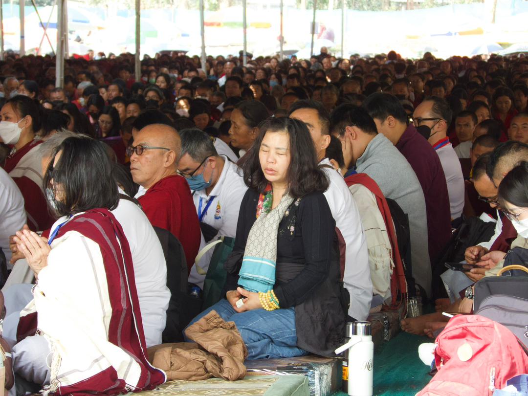 Following the midday break, His Holiness continued with the bestowal of oral transmissions (ལྗགས་ལུང་) in the afternoon session, transmitting the sacred texts and mantras that form the foundation of these practices.